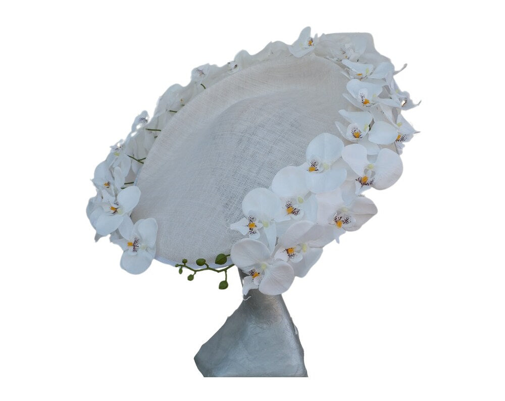 Amanda - Extra large White Hatinator edged with Silk Orchids