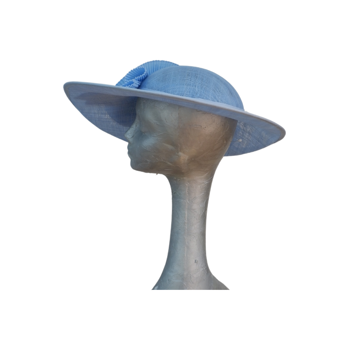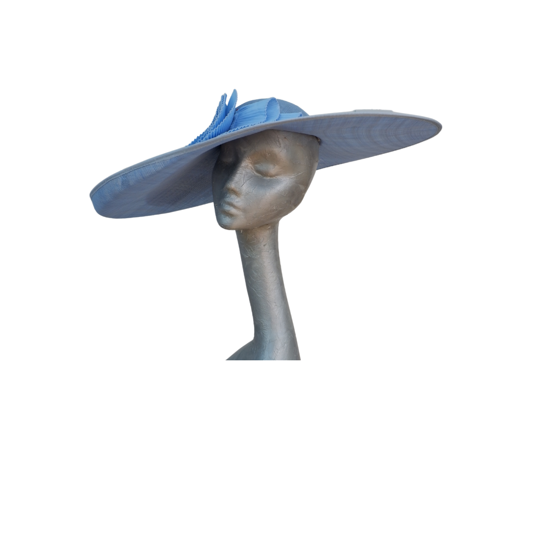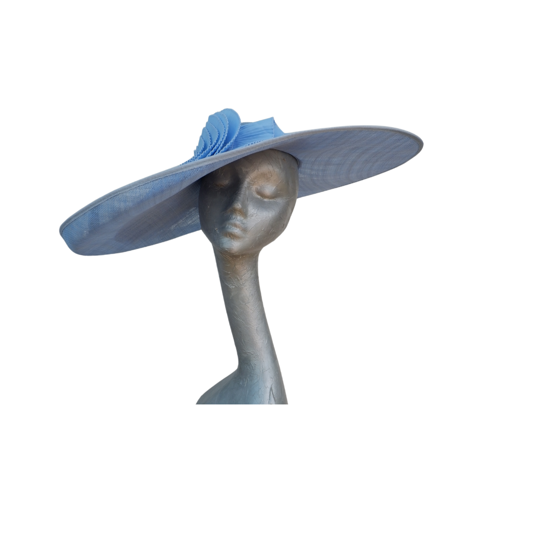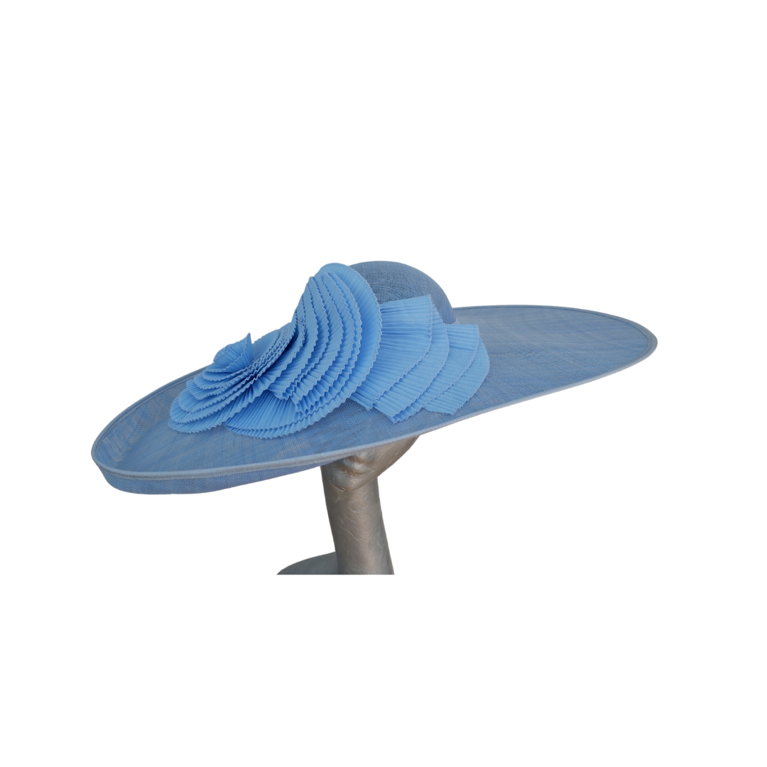 Amy - Extra large Sky Blue Hat with Pleated Trim