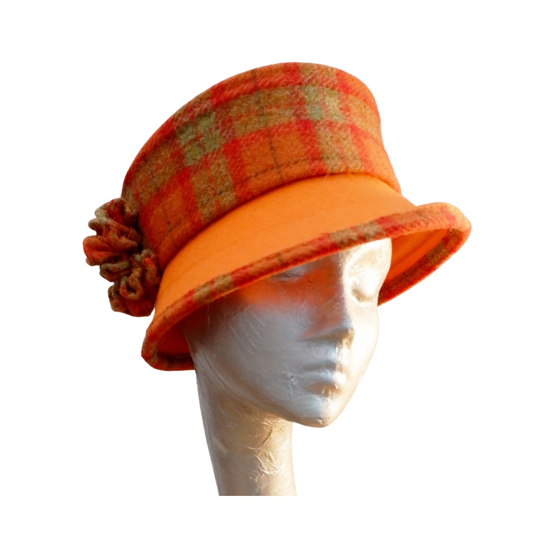 Bonnie Orange Felt Bucket Hat, Harris Tweed