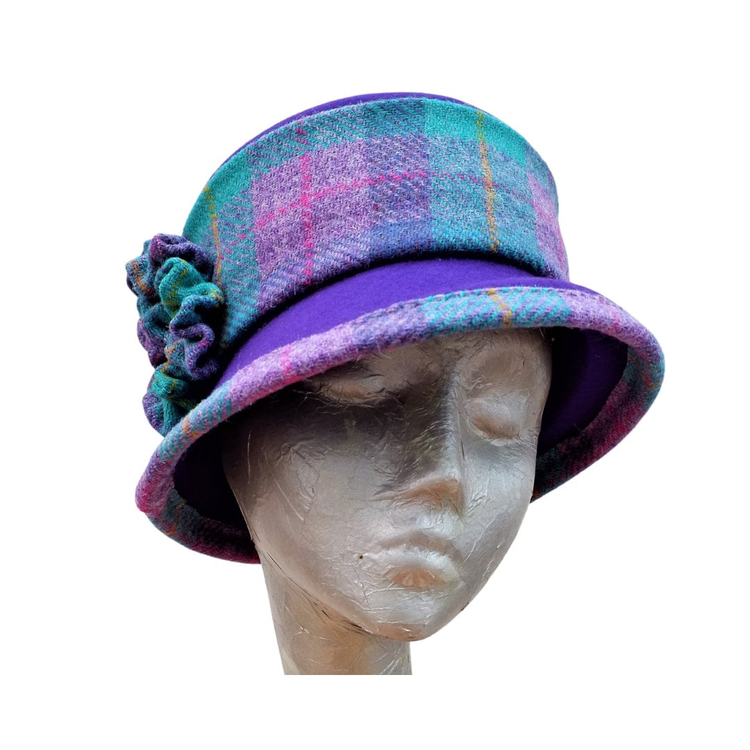 Bonnie - Purple Felt Bucket Hat with Harris Tweed Trim