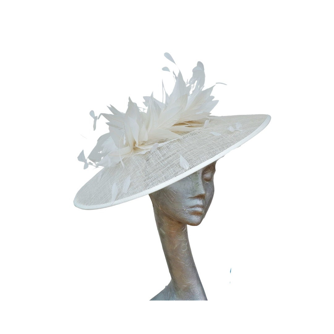 Beautiful large oval fasciator with an extra large feather detail to the top making this a truly elegant and stuning piece.Please note:- Handmade in the United Kingdom