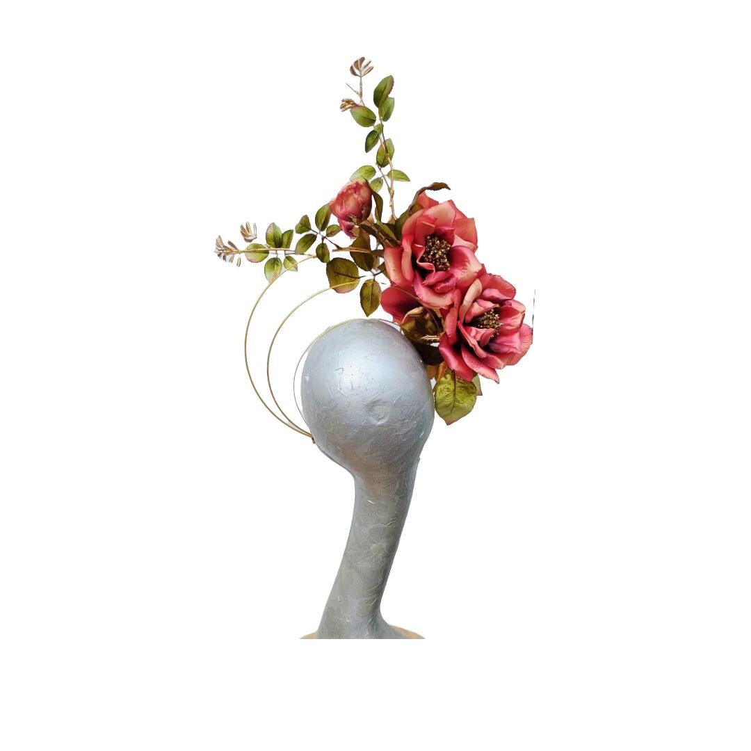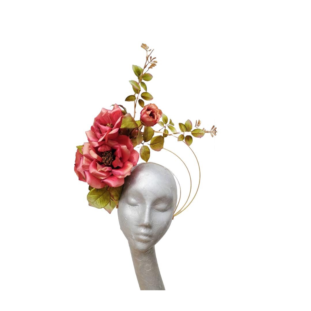Stunning Delicate Russet & Gold large rose double halo narrow Alice band .