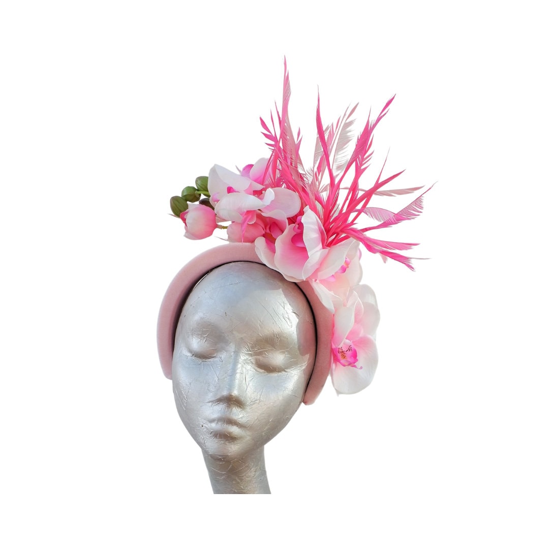 Somersby - 3 tone Pink Headband with Feathers & Orchids