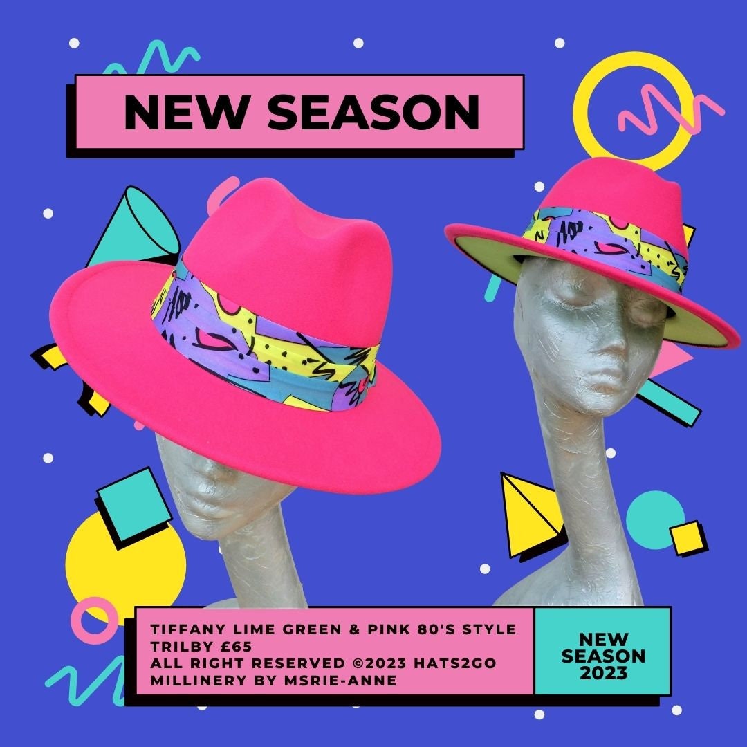 Get your 80's on with these gorgeous felt Panama Trilby's made with an 80's inspired trim each one slightly different in stunning bright shades of pink and green.